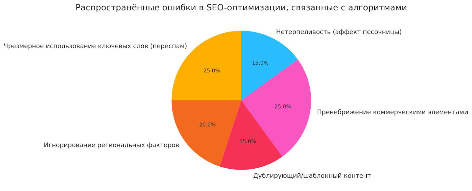 Переполнение статьи вариациями ключевых слов приводит к тому, что она теряет фокус и становится беспорядочной. Контент должен быть сконцентрированным и ясно отвечать на запросы пользователей, а не быть похожим на словесное ассорти.